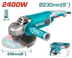 صاروخ زاوية كهربائي من TOTAL بقدرة 2400 وات ومقاس 9 بوصة (230 مم)، مصمم لتقديم أداء قوي ومثالي في أعمال التقطيع والسنفرة الثقيلة. يعمل على جهد كهربائي 220-240 فولت بتردد 50/60 هرتز، ويتميز بسرعة دوران بدون حمل تصل إلى حوالي 6300 لفة في الدقيقة